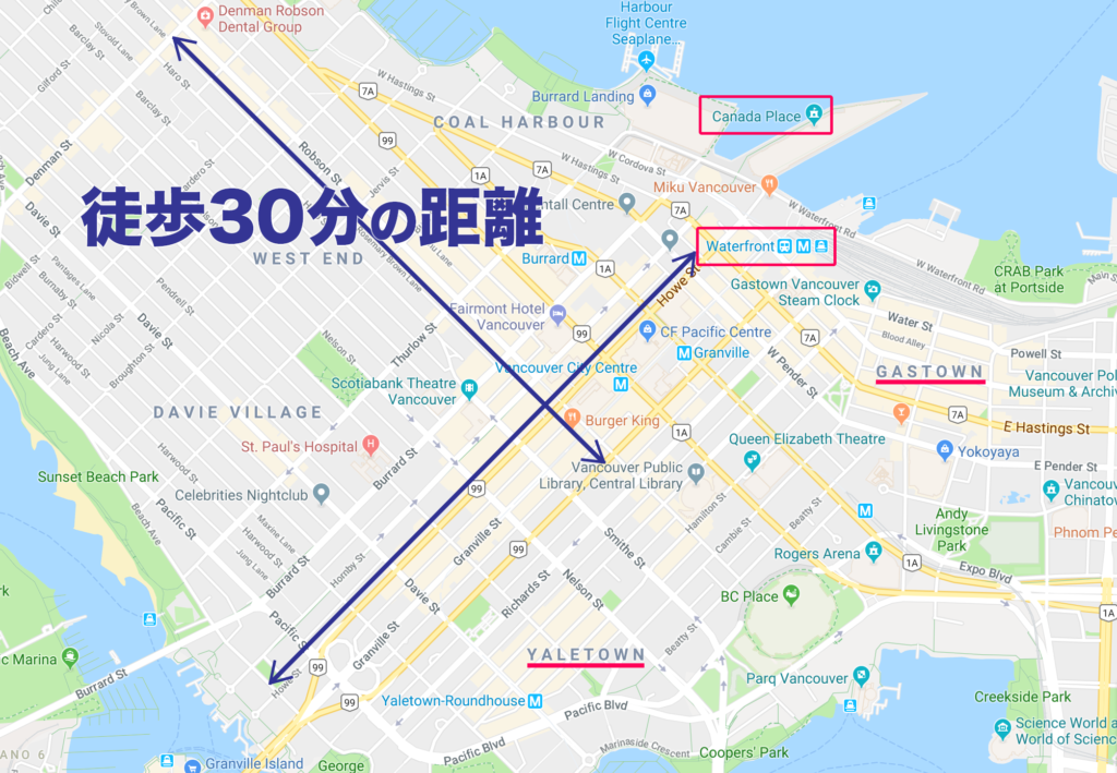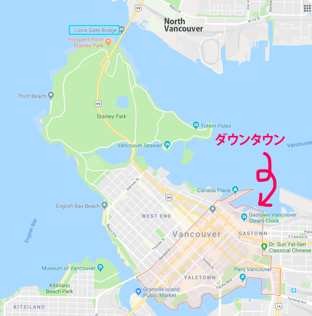 次にバンクーバーのほとんどの語学学校、カレッジがあるダウンタウンことバンクーバーの中心市街地。